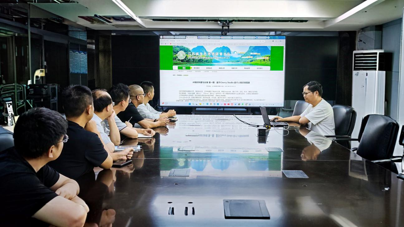 6月20日下午,生态地质队生态地质信息中心邀请单位骨干员工在12楼会议室研讨“AI工具在地质工作中的实践应用”专题。专题会上徐国伟同志就聚焦人工智能技术与生态地质业务的深度融合作出了相关汇报,并重点展示了基于Cherry Studio平台构建的本地AI知识库在业务提效与科普创新中的突破性成果,标志着生态地质队在新质生产力应用探索上迈出关键一步。